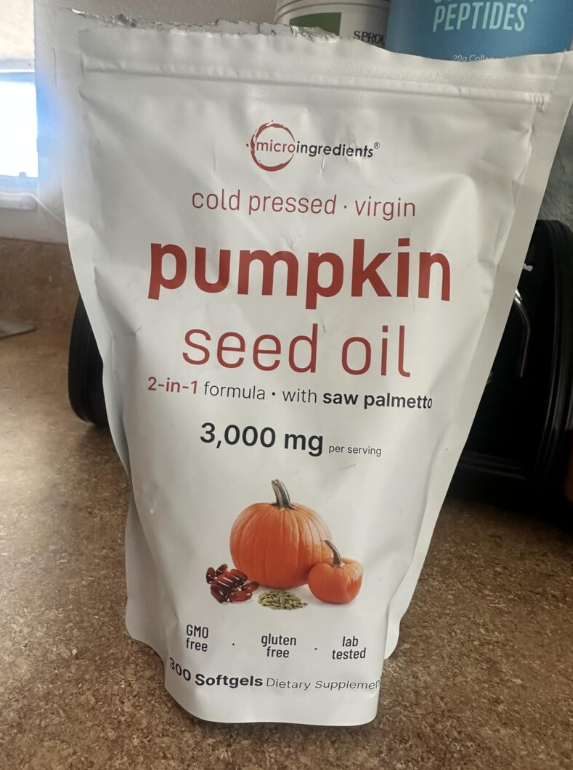 Pumpkin seed oil and saw palmetto are used to support healthy DHT balance, which gets closer to the root of the problem while also supporting prostate and hormonal health. Many customers use this instead of or together with regular hair vitamins.